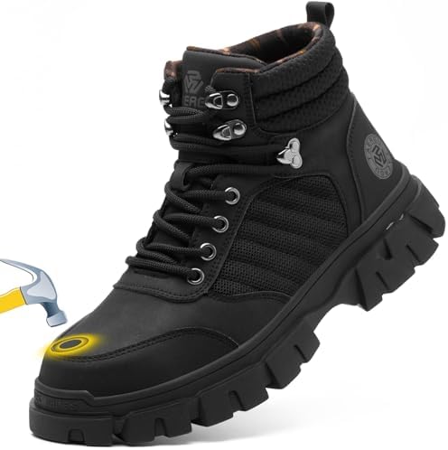 KELODON Waterproof Steel Toe Boots For Men-6 Inch Comfortable Mens Safety Work Boots Indestructible Steel Toe Shoes Lightweight Non Slip Puncture Resistant Industrial Construction Boot